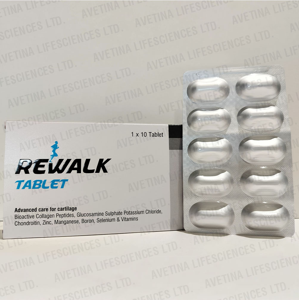 Rewalk tablet eases joint pain by maintain healthy joints, stimulating cartilage production ,helps restores bone mineral density and improves bone strength ,skin collagen density